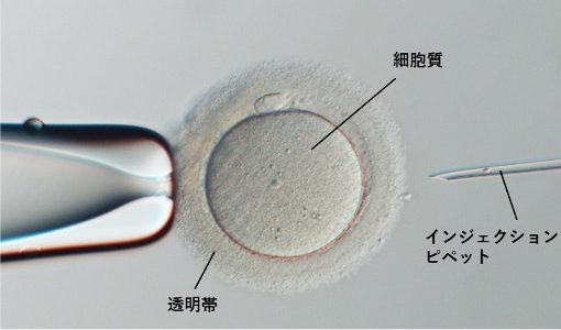 先端の尖った細いガラス針で、透明帯を貫通し、卵細胞を吸引することで破膜し、精子を卵子内に注入します。卵子ごとに細胞膜の強さが違うため、弱い卵子の場合は、針を刺した時点で変性してしまうこともあります。