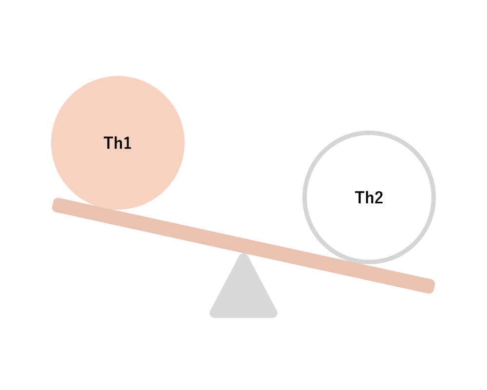 反復着床不全や不育症の一部では、Th1優位、Th1/Th2比高値が認められ、胚に対する拒絶反応が関与する可能性が報告されています。